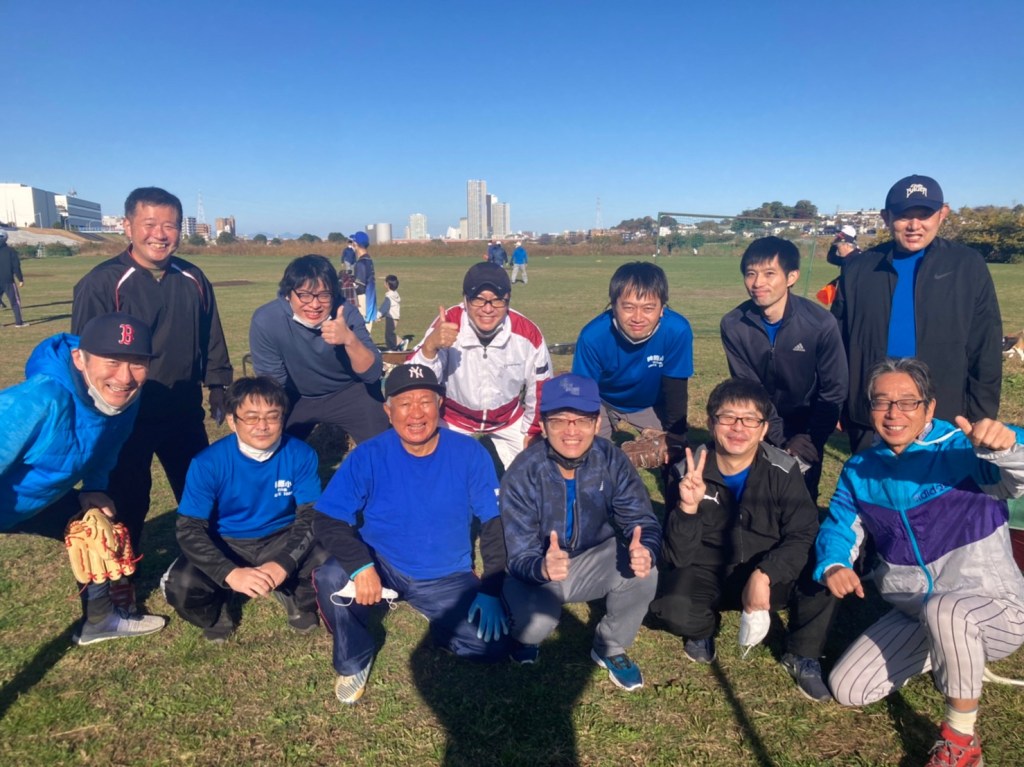 11/27(日)、秋晴れの少し汗ばむ陽気の中、多摩川河川敷にて開催の川崎おやじの会ソフトボール大会に総勢12名で参加してきました⚾