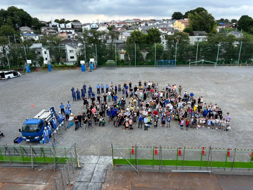 今年は体育館工事の日程を避けたつもりが避けられず、校長先生も変わって1年目、来年40周年、打ち上げ花火をやるぞ!と様々なプレッシャーがかかる中、前の週では猛暑で熱中症リスクが高まり、高知でプールの問題が発生して追い打ちをかけられました。さらに、当日には梅雨が明けておらず雨が降るかもという不安がある中の実施でした![]()