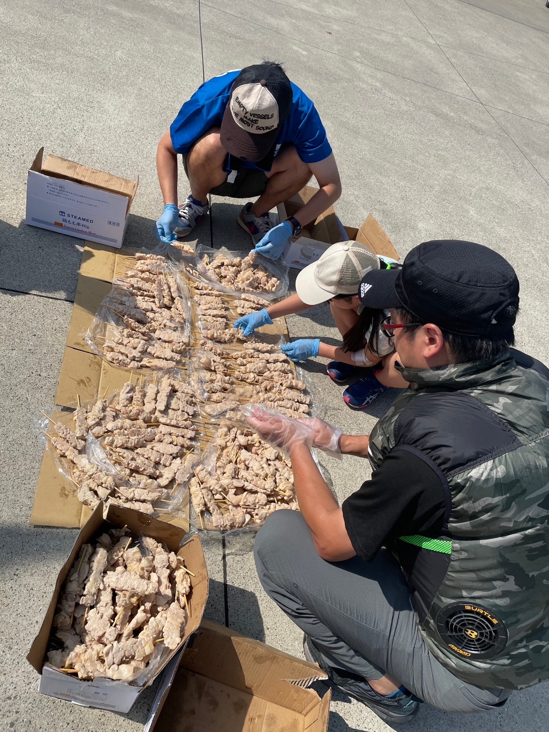 そして、焼き鳥も焼けるように、下準備として、凍った焼き鳥を解凍しつつ、串をさきっちょだけ出す。。これがまた大変😂😂