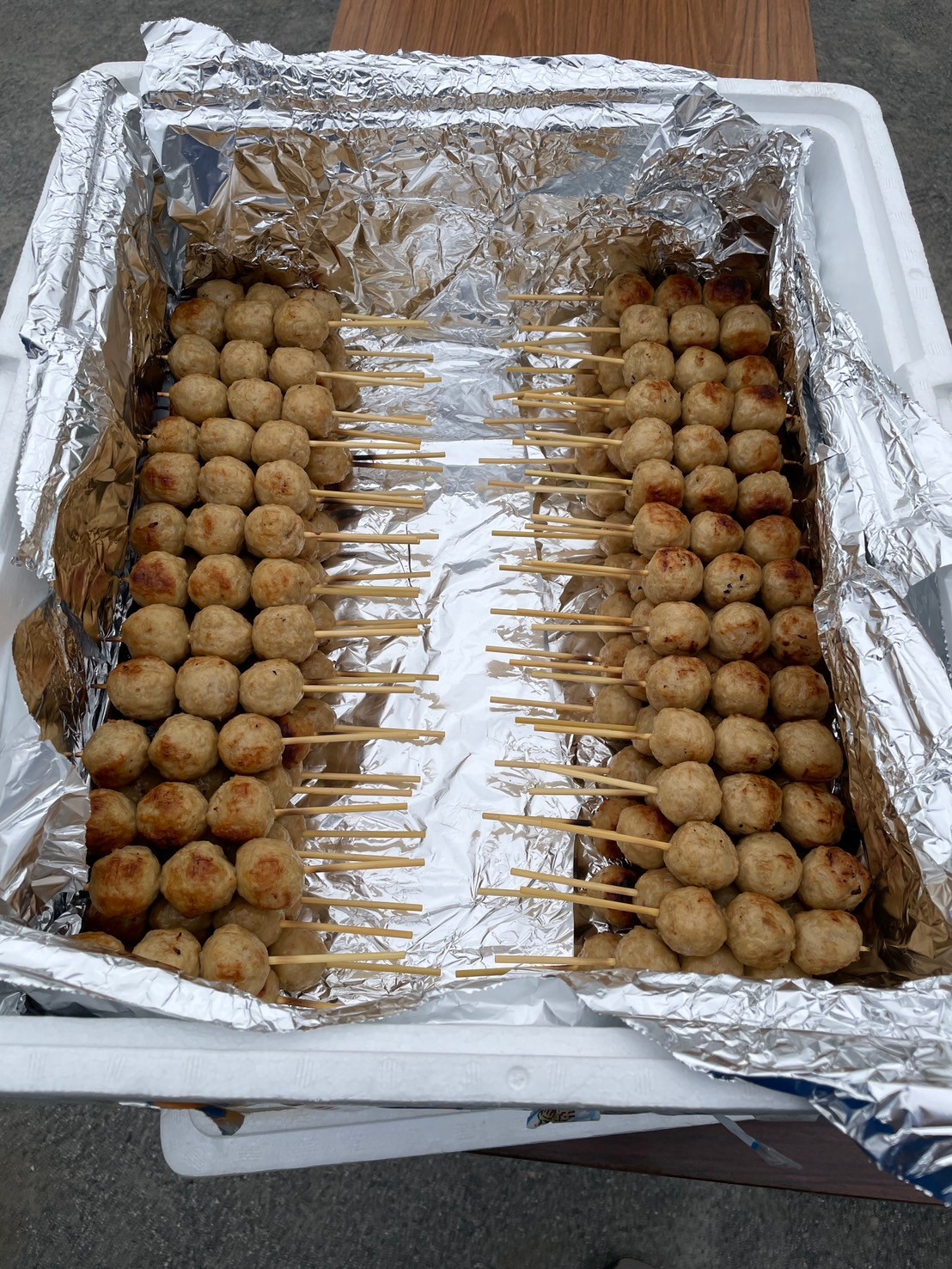 つくねは業者の発注の手違いがあり、届く時間が9:00ごろと話していたのですが、問い合わせしたところ、数量の手違いもあり、+500本の合計2200本を売らなければならないことになってしまいました。