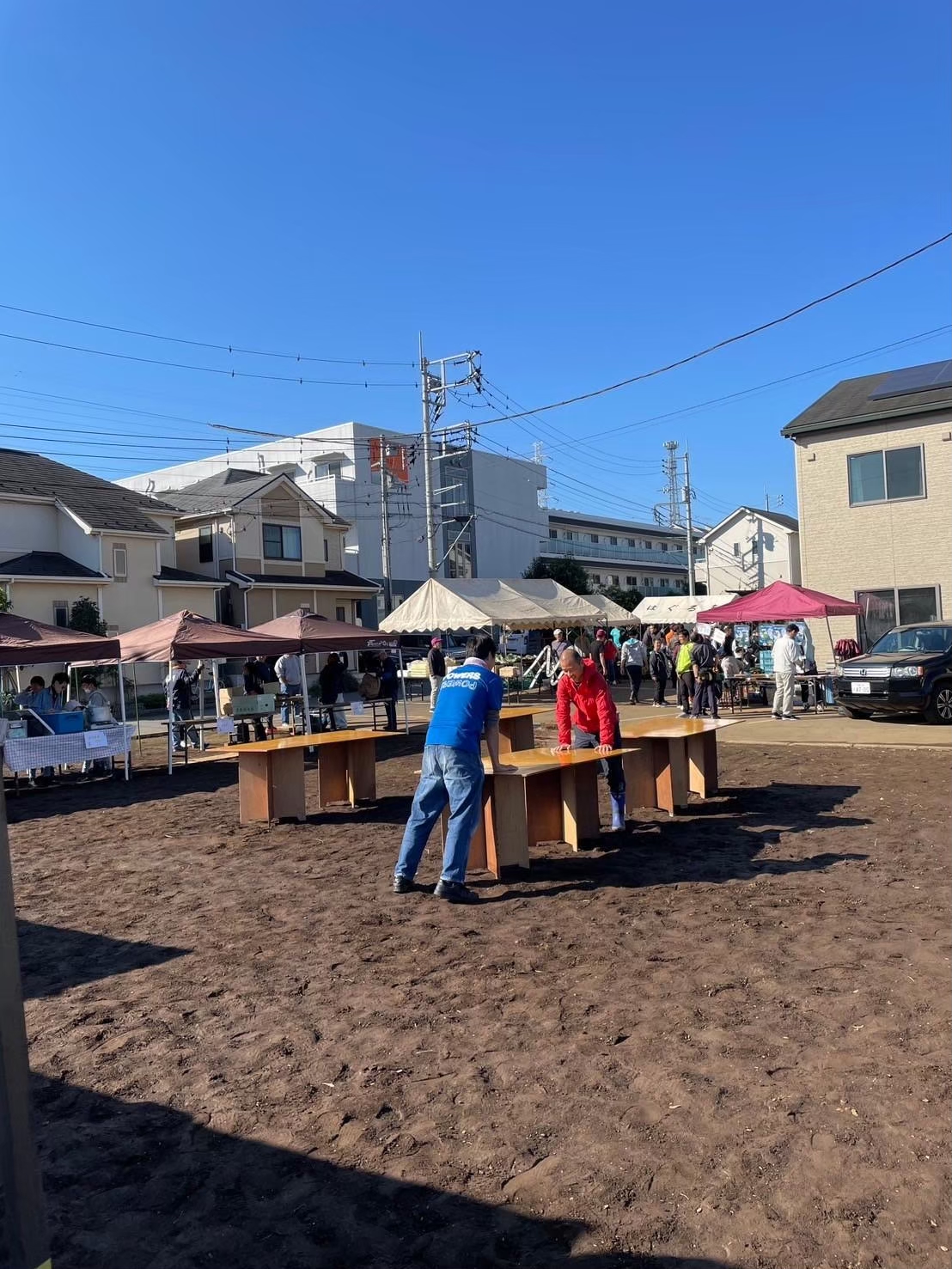 前日雨だったので、足元はよくないですが、当日は快晴だったため、朝から場所のセッティングやら、販売の準備をして迎えました。