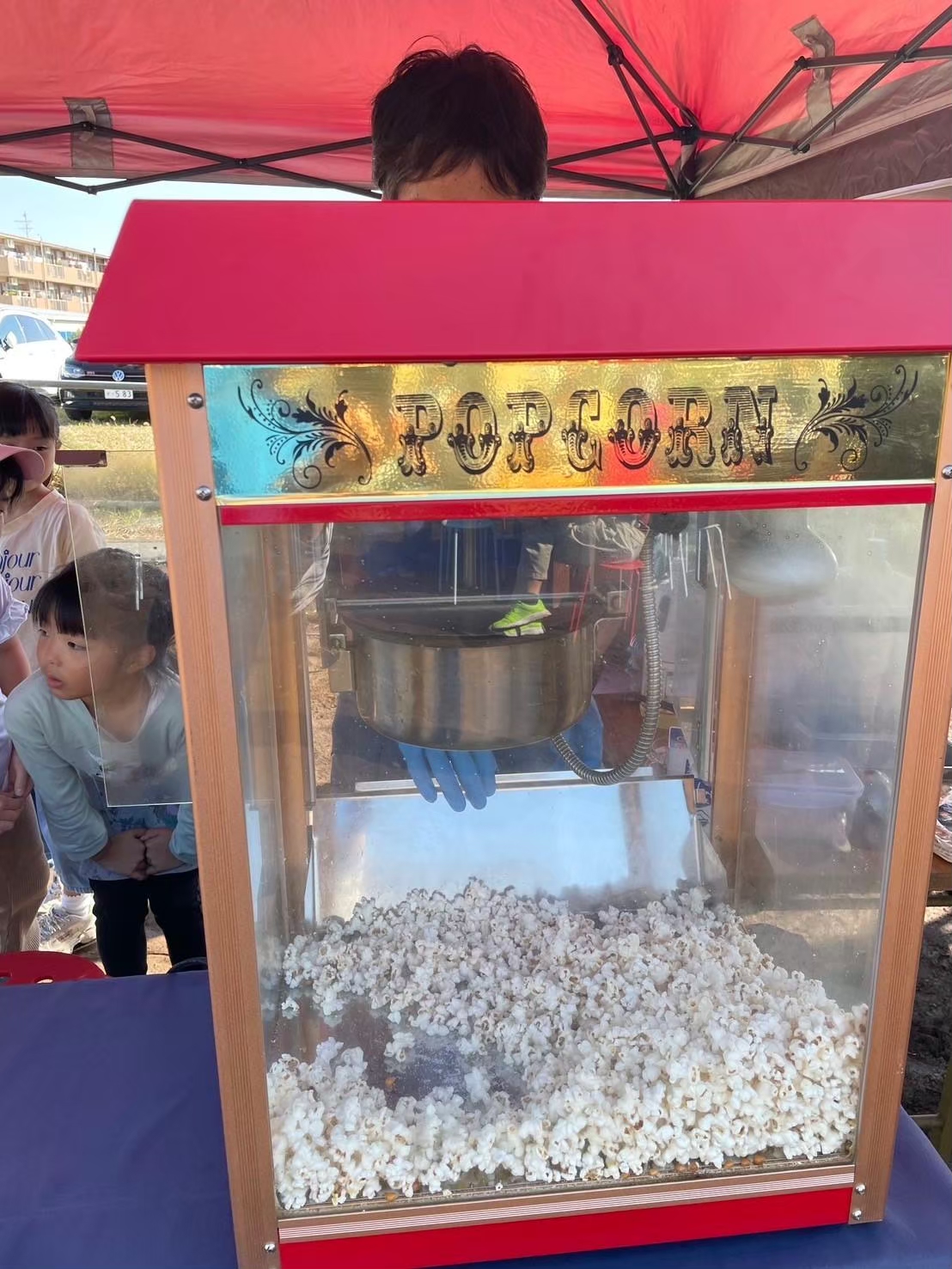 材料の準備はすべてはぐるま農園さんがしてくれているので、私たちはほぼ売るだけですが、ポップコーンを作るのがなかなか楽しい!