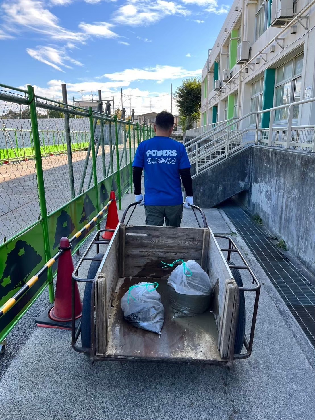 簡単そうに見えて、重労働です。20kgくらいの砂袋を20個くらい運んだかな。